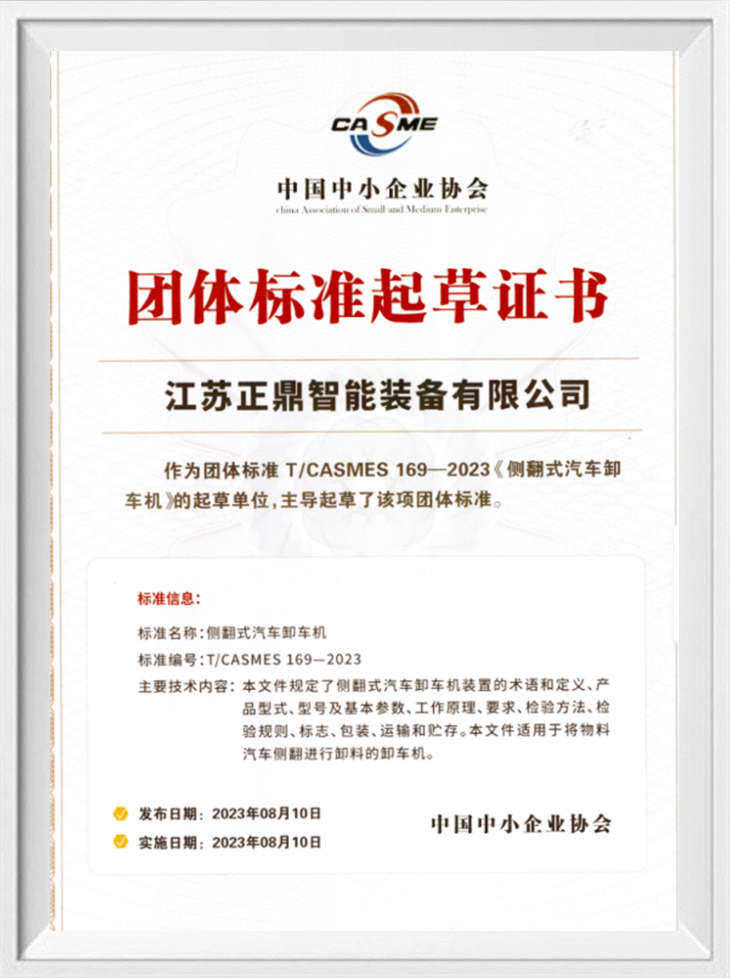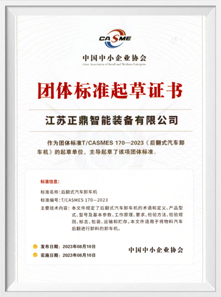 شهادة قياسية لمجموعة تفريغ شاحنات التفريغ